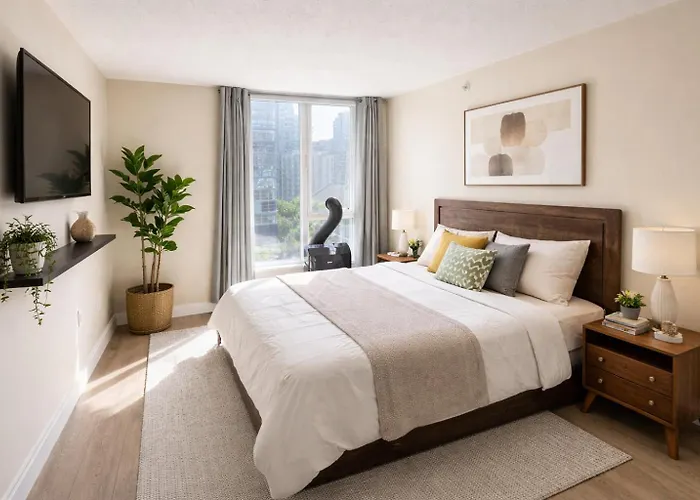 Para aproveitar as suas ferias em Vancouver, fique no o Chic 2Br Tinseltown Condo - Walk To Stadiums Vancouver, que está 2.5 km do Centro Espacial H. R. MacMillan e a uma distância de 750 metros do Estádio BC Place. Os hóspedes deste apartamento, situado nas proximidades de Gastown, podem relaxar numa pátio.